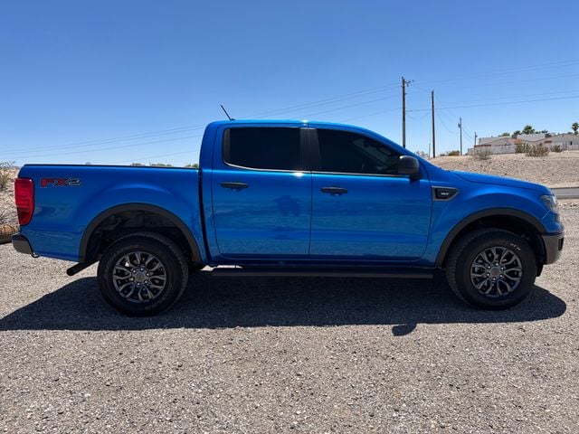 This Ford Ranger is equipped with the following features: Equipment Group 301A Mid (110V AC Power Outlet, Auto-Dimming Rear-View Mirror, Leather-Wrapped Shifter, Leather-Wrapped Steering Wheel, and Reverse Sensing System), FX2 Package (Electronic-Locking Rear Differential, Exposed Front Tow Hooks, FX2 Box Decal, Off-Road Screen in Cluster, and Off-Road Tuned Suspension), Sport Appearance Package (Black Mesh Grille w/Magnetic Painted Surround, Black Wheel-Lip Molding, Magnetic Painted Fender Vent Surround, Magnetic Painted Front & Rear Bumper, Sport Box Decal, and Wheels: 17" Magnetic Painted Aluminum Sport), Trailer Tow Package (Class IV Trailer Hitch Receiver), 3.73 Axle Ratio, 4-Wheel Disc Brakes, 6 Speakers, ABS brakes, Air Conditioning, Alloy wheels, AM/FM radio: SiriusXM, AM/FM Stereo, Auto High-beam Headlights, Auto Start-Stop Removal, Auto Start-Stop Technology, Automatic temperature control, Brake assist, Bumpers: body-color, Compass, Delay-off headlights, Driver door bin, Driver vanity mirror, Dual front impact airbags, Dual front side impact airbags, Electronic Stability Control, Emergency communication system: SYNC 3 911 Assist, Exterior Parking Camera Rear, Front anti-roll bar, Front Bucket Seats, Front Center Armrest, Front dual zone A/C, Front fog lights, Front Premium Cloth Bucket Seats, Front reading lights, Front wheel independent suspension, Fully automatic headlights, Illuminated entry, Low tire pressure warning, Occupant sensing airbag, Outside temperature display, Overhead airbag, Overhead console, Panic alarm, Passenger door bin, Passenger vanity mirror, Power door mirrors, Power steering, Power windows, Rear reading lights, Rear seat center armrest, Rear step bumper, Rear window defroster, Remote keyless entry, Security system, SiriusXM Satellite Radio, Speed control, Speed-sensing steering, Steering wheel mounted audio controls, SYNC 3, SYNC 3/Apple CarPlay/Android Auto, Telescoping steering wheel, Tilt steering wheel, Traction control, Trip computer, Variably intermittent wipers, Voltmeter, and Wheels: 17" Silver-Painted Aluminum. Velocity Blue Metallic