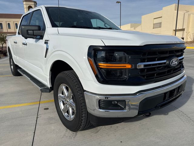 This Ford F-150 is equipped with the following features: 4WD, 3.31 Axle Ratio, 4-Wheel Disc Brakes, 6 Speakers, ABS brakes, Air Conditioning, Alloy wheels, AM/FM radio: SiriusXM with 360L, Auto High-beam Headlights, Auto-dimming Rear-View mirror, Automatic temperature control, Brake assist, Bumpers: chrome, Chrome wheels, Cloth 40/20/40 Front Seat, Compass, Delay-off headlights, Driver door bin, Driver vanity mirror, Dual front impact airbags, Dual front side impact airbags, Electronic Stability Control, Emergency communication system: SYNC 4 911 Assist, Front anti-roll bar, Front Center Armrest w/Storage, Front dual zone A/C, Front fog lights, Front reading lights, Front wheel independent suspension, Fully automatic headlights, Heated door mirrors, Illuminated entry, Low tire pressure warning, Navigation system: Connected Navigation, Occupant sensing airbag, Outside temperature display, Overhead airbag, Overhead console, Panic alarm, Passenger door bin, Passenger vanity mirror, Power door mirrors, Power driver seat, Power steering, Power windows, Radio data system, Radio: AM/FM SiriusXM w/360L, Rear reading lights, Rear step bumper, Rear window defroster, Remote keyless entry, Security system, Speed control, Split folding rear seat, Steering wheel mounted audio controls, SYNC 4 w/Enhanced Voice Recognition, Tachometer, Telescoping steering wheel, Tilt steering wheel, Traction control, Trip computer, Variably intermittent wipers, Voltmeter, and Wheels: 18" Chrome-Like PVD. White 4WD.