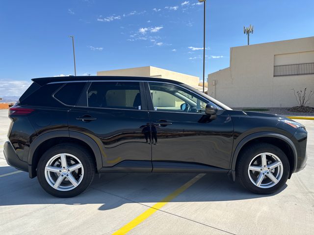 This Nissan Rogue is equipped with the following features: 18" Aluminum Alloy Wheels, 4-Wheel Disc Brakes, 5.604 Axle Ratio, 6 Speakers, ABS brakes, Air Conditioning, Alloy wheels, AM/FM Radio, AM/FM radio: SiriusXM, Auto High-beam Headlights, Automatic temperature control, Black Splash Guards (Set of 4), Brake assist, Bumpers: body-color, Chrome Rear Bumper Protector, Cloth Seat Trim, Delay-off headlights, Driver door bin, Driver vanity mirror, Dual front impact airbags, Dual front side impact airbags, Electronic Stability Control, Emergency communication system: NissanConnect Services, Floor Mats w/1-Piece Cargo Area Protector, Four wheel independent suspension, Front anti-roll bar, Front Bucket Seats, Front Center Armrest, Front dual zone A/C, Front reading lights, Fully automatic headlights, Heated door mirrors, Illuminated entry, Knee airbag, Low tire pressure warning, NissanConnect featuring Apple CarPlay and Android Auto, Occupant sensing airbag, Outside temperature display, Overhead airbag, Overhead console, Panic alarm, Passenger door bin, Passenger vanity mirror, Power door mirrors, Power driver seat, Power steering, Power windows, Radio data system, Rear anti-roll bar, Rear Parking Sensors, Rear seat center armrest, Rear side impact airbag, Rear window defroster, Rear window wiper, Remote keyless entry, Security system, Speed control, Speed-Sensitive Wipers, Split folding rear seat, Spoiler, Steering wheel mounted audio controls, Tachometer, Telescoping steering wheel, Tilt steering wheel, Traction control, Trip computer, Turn signal indicator mirrors, and Variably intermittent wipers. Super Black