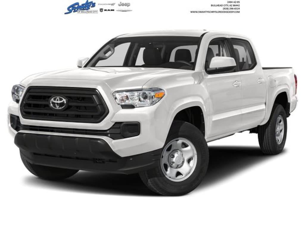 This Toyota Tacoma is equipped with the following features: 6 Speakers, ABS brakes, Air Conditioning, AM/FM radio: SiriusXM, Anti-whiplash front head restraints, Apple CarPlay/Android Auto, Auto High-beam Headlights, Axle Ratio: 4.30, Brake assist, Bumpers: body-color, Driver door bin, Dual front impact airbags, Dual front side impact airbags, Electronic Stability Control, Emergency communication system: Safety Connect with 1-year trial, Exterior Parking Camera Rear, Front anti-roll bar, Front Bucket Seats, Front Center Armrest, Front reading lights, Front Seats, Front wheel independent suspension, Illuminated entry, Knee airbag, Low tire pressure warning, Occupant sensing airbag, Outside temperature display, Overhead airbag, Overhead console, Passenger door bin, Power door mirrors, Power steering, Power windows, Rear step bumper, Speed control, Speed-sensing steering, Split folding rear seat, Steering wheel mounted audio controls, Tachometer, Telescoping steering wheel, Tilt steering wheel, Traction control, Variably intermittent wipers, and Wheels: 16" x 7J Style Steel Disc. White