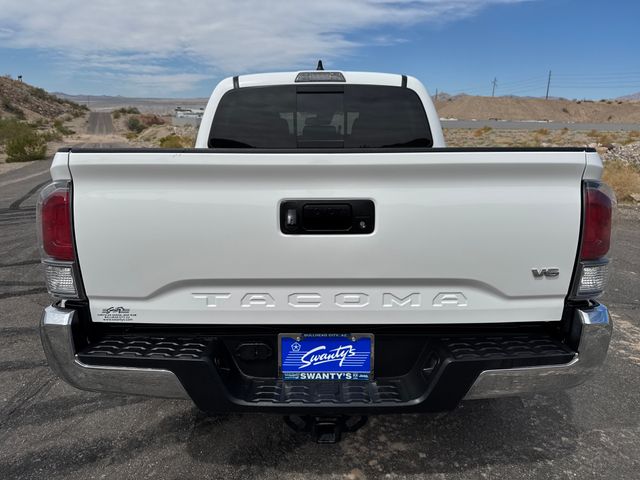This Toyota Tacoma is equipped with the following features: 120V/400W Deck Mounted AC Power, 6 Speakers, ABS brakes, Air Conditioning, Alloy wheels, AM/FM radio: SiriusXM, Anti-whiplash front head restraints, Apple CarPlay/Android Auto, Auto High-beam Headlights, Auto-dimming Rear-View mirror, Automatic temperature control, Axle Ratio: 3.91, Black Overfenders, Brake assist, Bumpers: body-color, Driver door bin, Dual front impact airbags, Dual front side impact airbags, Electronic Stability Control, Emergency communication system: Safety Connect (1-year trial), Engine Immobilizer, Exterior Parking Camera Rear, Fabric Seat Trim, Front anti-roll bar, Front Bucket Seats, Front Center Armrest, Front dual zone A/C, Front fog lights, Front reading lights, Front Seats, Front wheel independent suspension, Gray Grille w/Smoked Finish & Chrome Surround, Heated door mirrors, Illuminated entry, Knee airbag, Leather Seat Trim, Leather Shift Knob, Low tire pressure warning, Occupant sensing airbag, Outside temperature display, Overhead airbag, Overhead console, Panic alarm, Passenger door bin, Power door mirrors, Power driver seat, Power steering, Power windows, Radio: Audio, Rear step bumper, Remote keyless entry, Security system, Speed control, Speed-sensing steering, Split folding rear seat, Steering wheel mounted audio controls, Tachometer, Telescoping steering wheel, Tilt steering wheel, Traction control, Trip computer, Turn signal indicator mirrors, Variably intermittent wipers, and Wheels: 16" Machined Contrast Alloy. White
